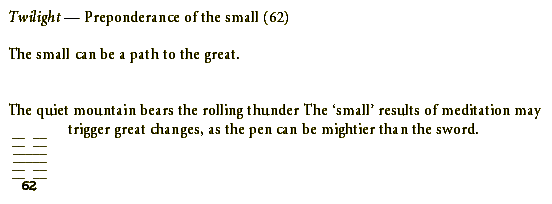 Waters from many fountains mingle, and none can select one drop and name its source. The water fills the shape of the reservoir it finds. Being filled by many streams and clouds, the reservoir will not runs dry. The heart is fed by many channels.